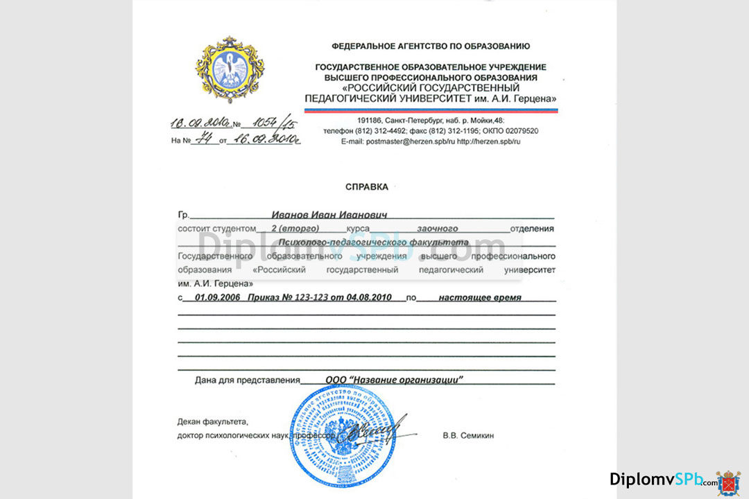 справка об обучении в вузе обычная