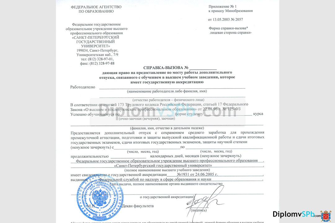 справка вызова на сессию